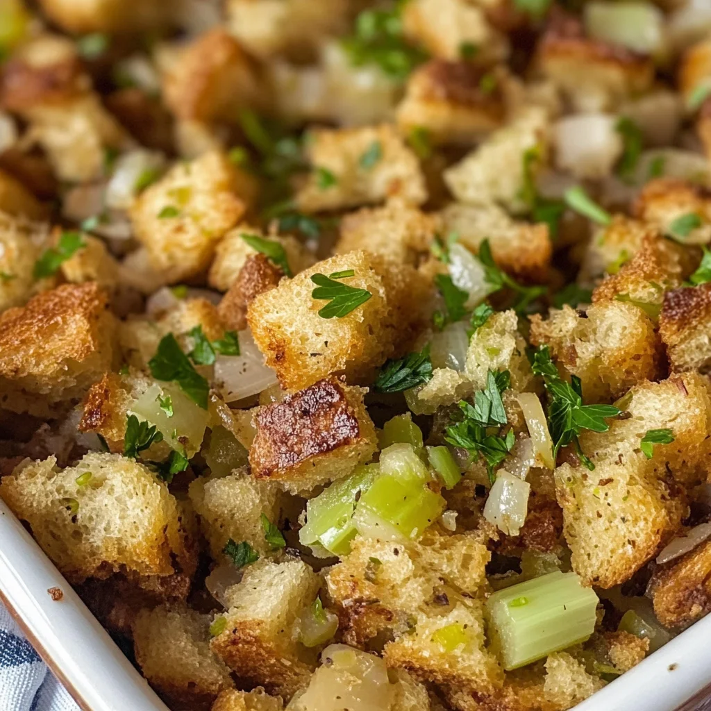 This Grandma’s Thanksgiving Stuffing Recipe is a heartwarming classic that adds a touch of nostalgia to any holiday gathering. With its perfect blend of savory herbs, soft bread cubes, and sautéed vegetables, this stuffing is an essential side dish that pairs beautifully with chicken or beef. Easy to prepare and adaptable, it can be made ahead of time for convenience on the big day. Prepare to impress your family and friends with this delicious stuffing that will undoubtedly become a cherished tradition at your table.