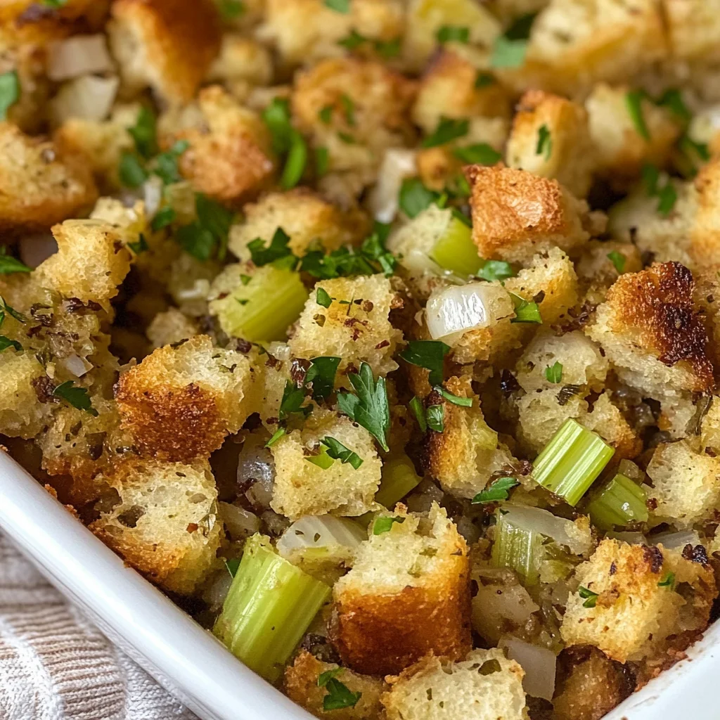 Grandma’s Thanksgiving Stuffing Recipe is a timeless classic that brings warmth and comfort to your holiday table. Its balance of flavors and textures makes it versatile enough for any meal throughout the year. Don’t hesitate to customize it with your favorite ingredients for a personal touch!